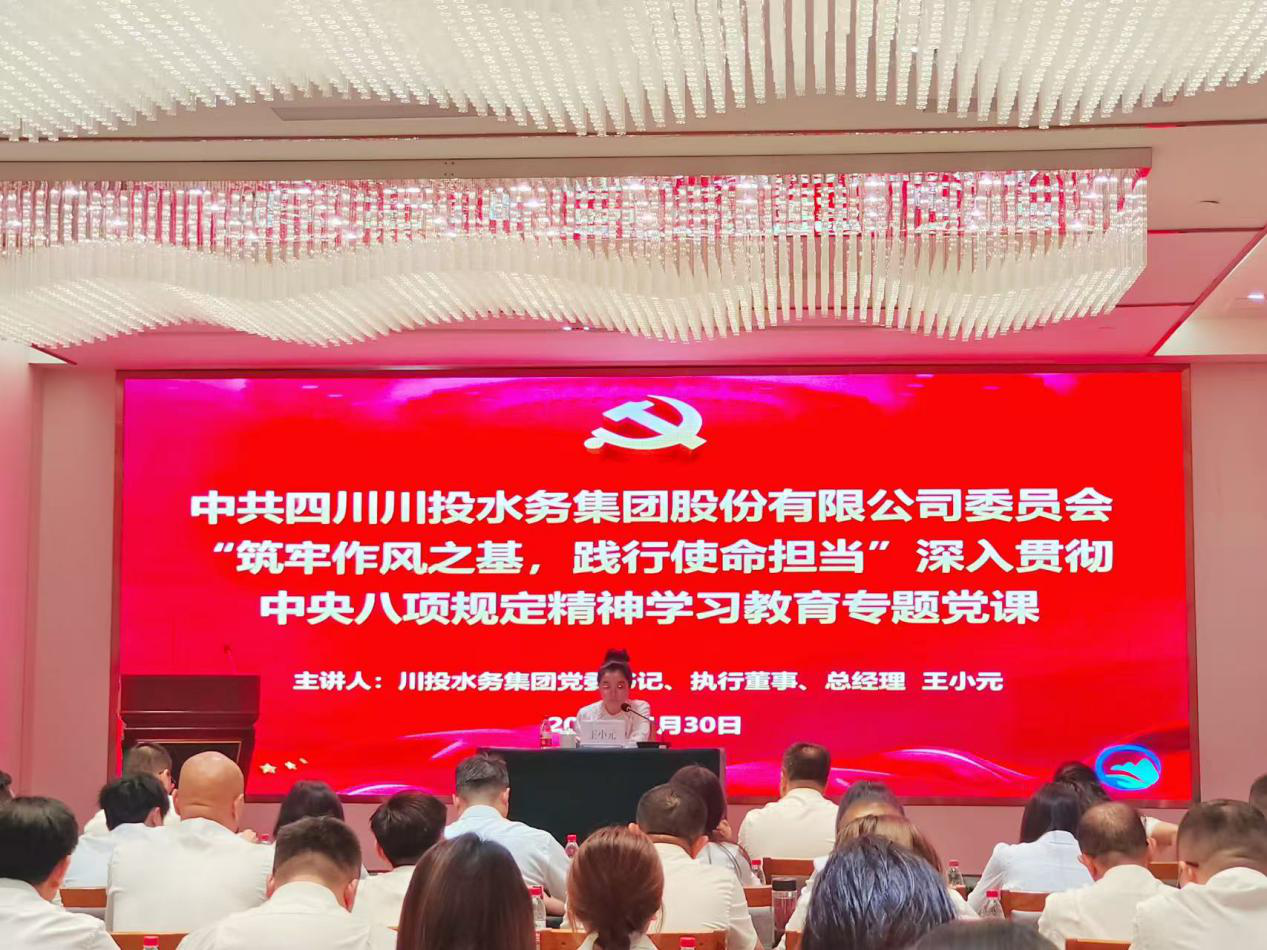 6月30日,在中國共產黨104周年華誕來臨之際,四川川投水務集團召開了深入學習中央八項規定精神專題黨課暨“七一”表彰大會。集團黨委書記、執行董事、總經理王小元作專題授課,黨委委員、副總經理徐子銳主持會議。