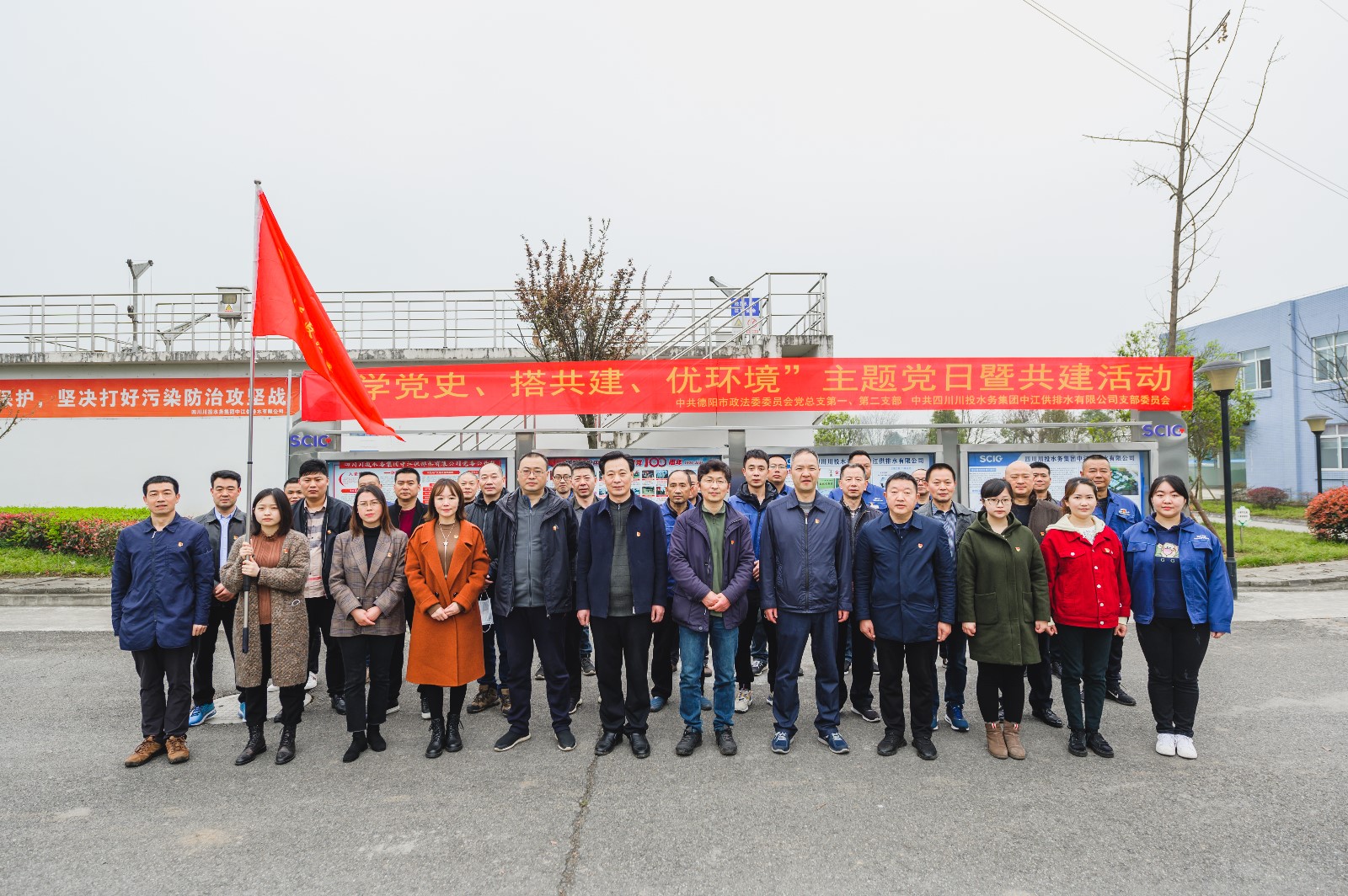 市委政法委副書記徐勇,市委政法委副書記張學偉,市委政法委副書記、市法學會常務副會長程正春,派駐市委政法委紀檢監(jiān)察組組長鄧玉琢以及市委政法委一、二支部全體黨員同志,中江水司支部書記朱禹以及中江水司全體黨員同志共計40余名黨員同志參加此次共建活動。