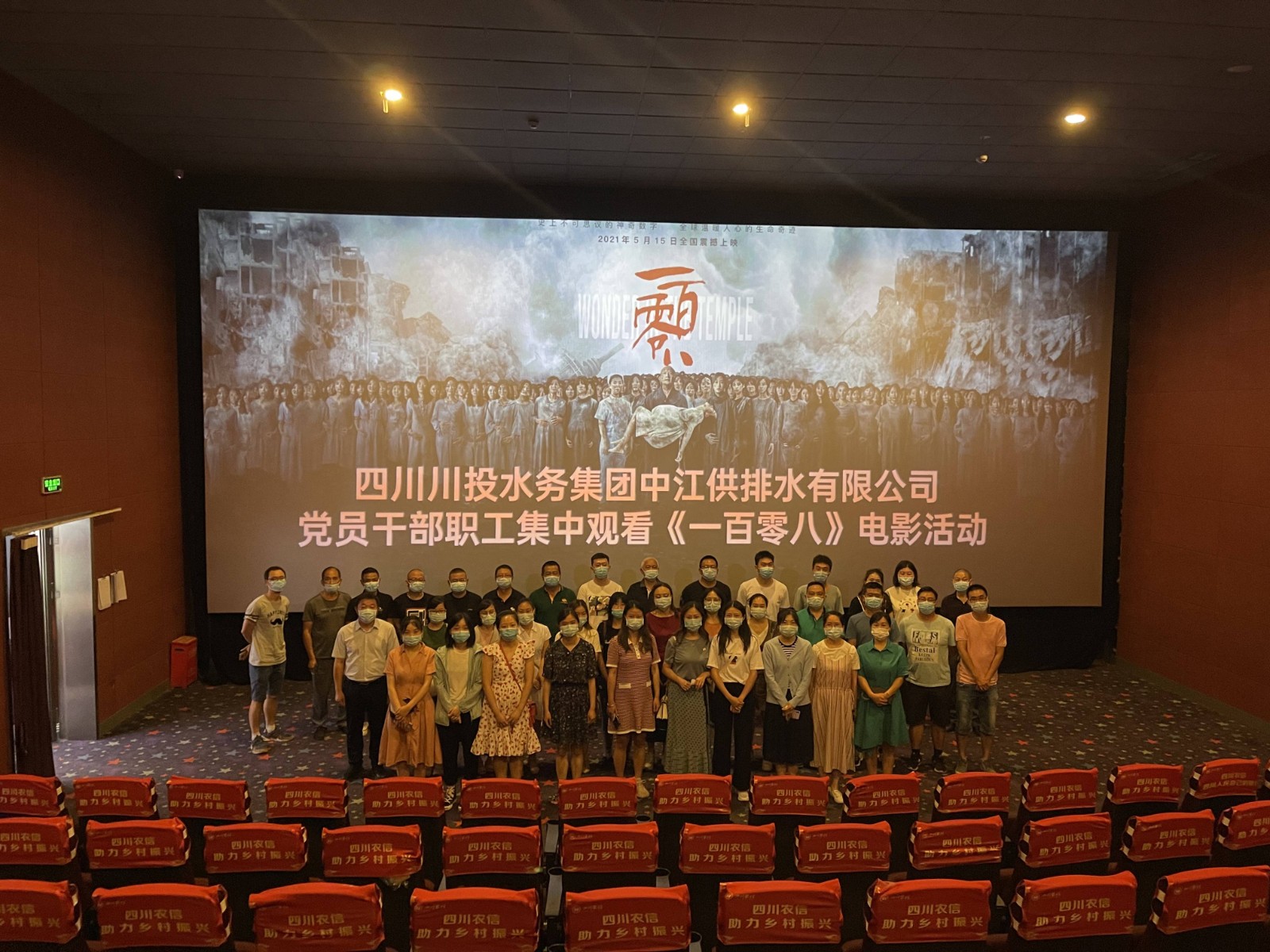 為慶祝中國共產黨成立100周年,扎實推進黨史學習教育,大力弘揚抗震救災精神、民族精神和時代精神,5月20日下午,中江水司組織黨員干部職工43人開展“弘揚抗震救災精神 激發不屈奮斗力量”主題黨日暨觀看“電影中的黨史”電影黨課推薦片目《一百零八》活動。