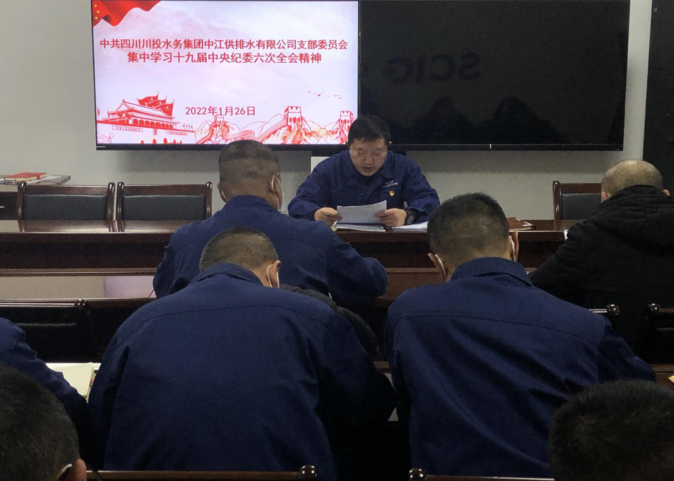 2022年1月26日,中江水司召開支部黨員大會,組織黨員干部集中學習近期重要會議、文件以及講話精神,部署貫徹落實工作。會議由黨支部書記、董事長、總經理朱禹主持,支部21名黨員參加會議。