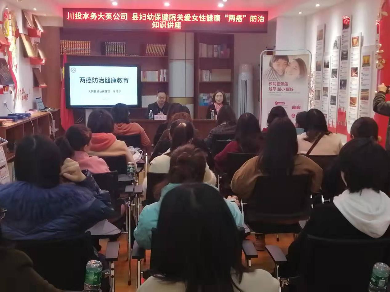 為切實維護廣大女性同胞的身心健康,提高全體女干部職工的健康保健意識。在“三八”國際勞動婦女節來臨之際,3月4日上午,川投水務大英公司黨支部、工會與大英縣婦幼保健院聯合舉辦關愛女性健康“兩癌”防治知識健康講座主題活動。公司全體女黨員干部職工參加,大英縣婦幼保健院院長龍艷華主講,川投水務大英公司副總經理、工會主席王洪先同志受公司黨支部書記、總經理王文川同志委托出席并主持講座。