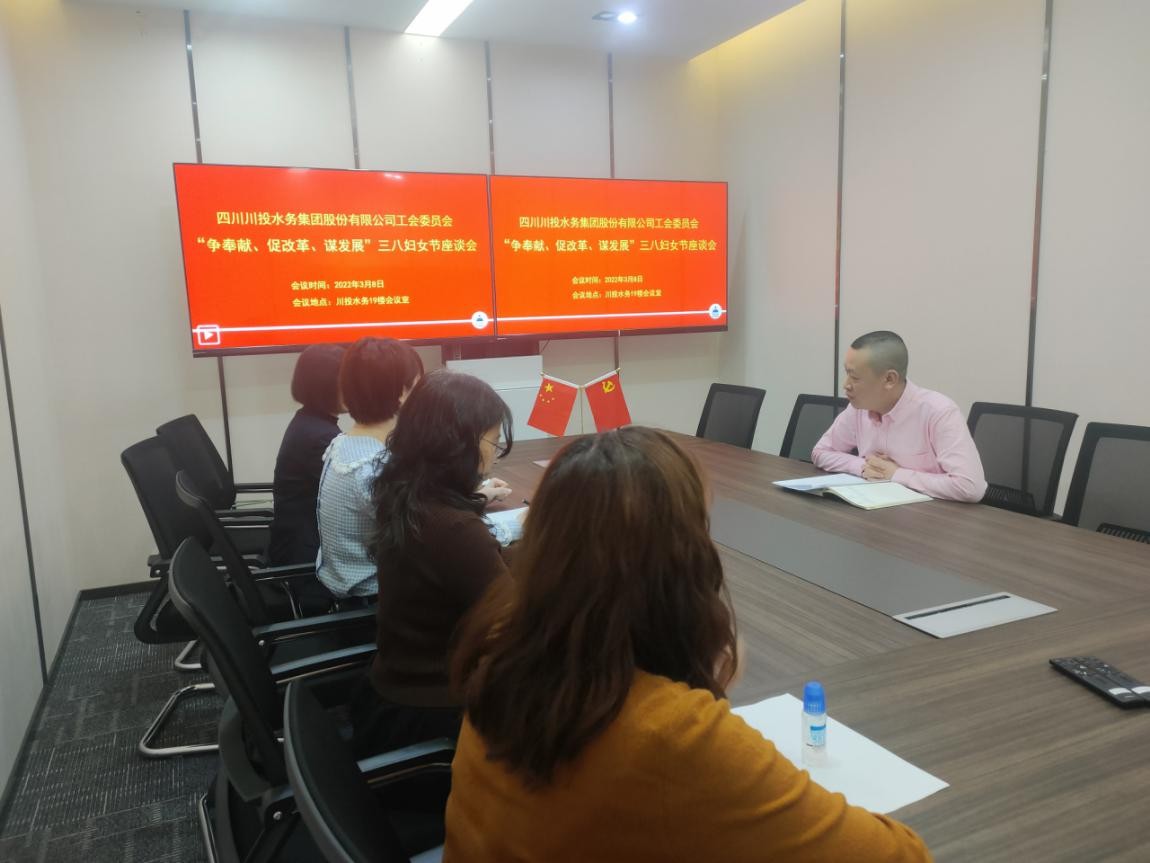 喜逢2022年“三八國際婦女節”來臨,川投水務集團工會在3月8日以“爭奉獻、促改革、謀發展”為主題,開展了主題鮮明、內容豐富、形式多樣“三八節”活動。川投水務本部全體女職工歡聚一堂,共度屬于自己的美好節日。會議由川投水務集團黨群紀檢工作部主任李至彬主持。
