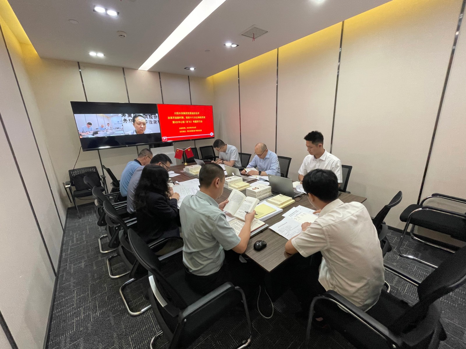 川投水務(wù)集團(tuán)本部中層以上黨員干部參加中心組(擴(kuò)大)專題學(xué)習(xí)會(huì)。