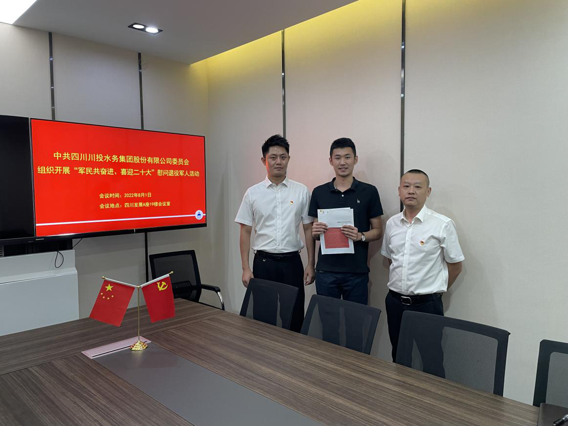 值此“八一”建軍節(jié)之際,川投水務(wù)集團(tuán)為進(jìn)一步密切軍政軍民關(guān)系,大力弘揚(yáng)擁軍優(yōu)屬光榮傳統(tǒng),增強(qiáng)新形勢(shì)下軍民團(tuán)結(jié),組織開(kāi)展了以“軍民共奮進(jìn)、喜迎二十大”為主題的走訪慰問(wèn)退役軍人活動(dòng)。