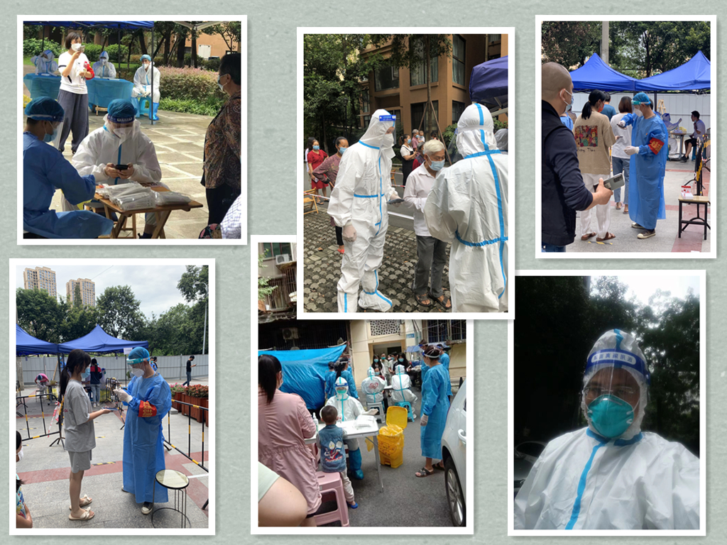 “各司其職、定格堅守”“請有序排隊、老年人請這邊先做”“大爺、大媽,我來幫您掃碼”“來小朋友,嘴巴張大,啊!”“大白”“小藍”志愿者們各司其職,引導著居民們排隊掃碼核酸采樣,醫護人員們也有條不紊地為居民進行核酸采樣。“一管管采樣試劑、一滴滴艱辛汗水、一條條臉龐勒痕”他們沒有喊苦喊累,依然用心用情地為居民們服務。