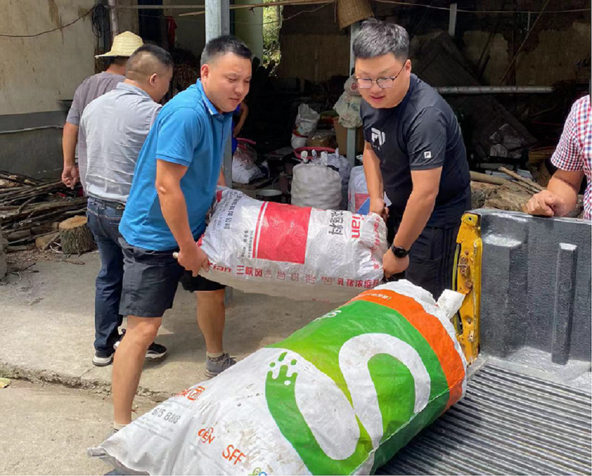 8月20日,斑竹溪村支兩委、萬源水司選派的原第一書記、新任第一書記挨家挨戶上門收購馬鈴薯,期間萬源水司充分發揮后盾單位幫扶作用,選派干部職工和運輸皮卡車協助銷售工作,大家彎著腰、或蹲著選品、打包裝袋、稱重計量,扛著一袋袋百多斤的馬鈴薯裝車。在運輸期間遇瓢潑大雨,為確保馬鈴薯不被雨水浸泡,眾人顧不得自身泥濘,身上的衣服不僅被泥水染臟,更被雨水、汗水濕透。從清晨6點到當晚10點,通過眾人一天的“奮戰”,成功銷售了并運輸到愛家超市約8000斤馬鈴薯。
