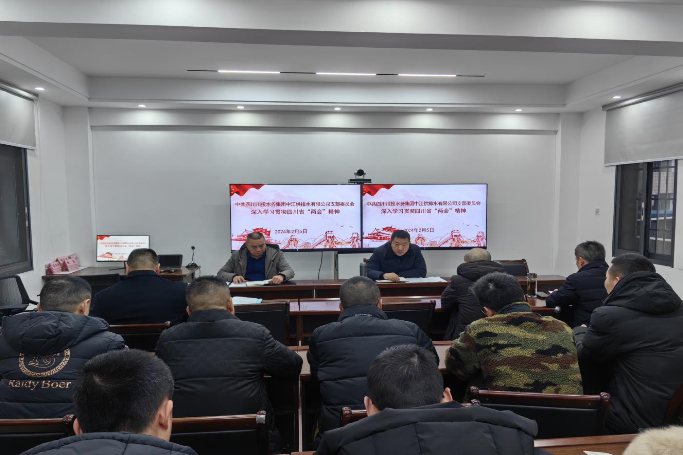 2月5日,中江水司召開會議,深入學(xué)習貫徹四川省“兩會”精神。會議由黨支部書記朱禹主持,公司班組以上管理人員、各部門員工代表參加了會議。