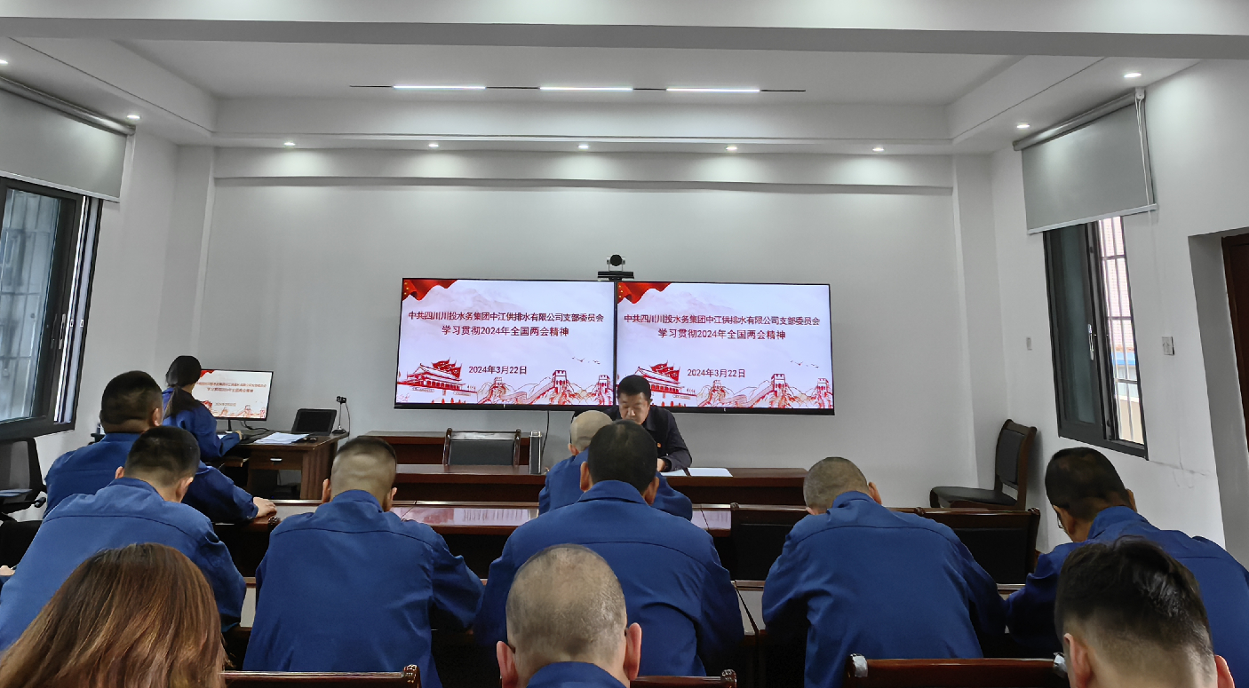 3月22日,中江水司召開會議,學習傳達2024年全國兩會精神,會議由黨支部書記朱禹主持,支部全體黨員參加。