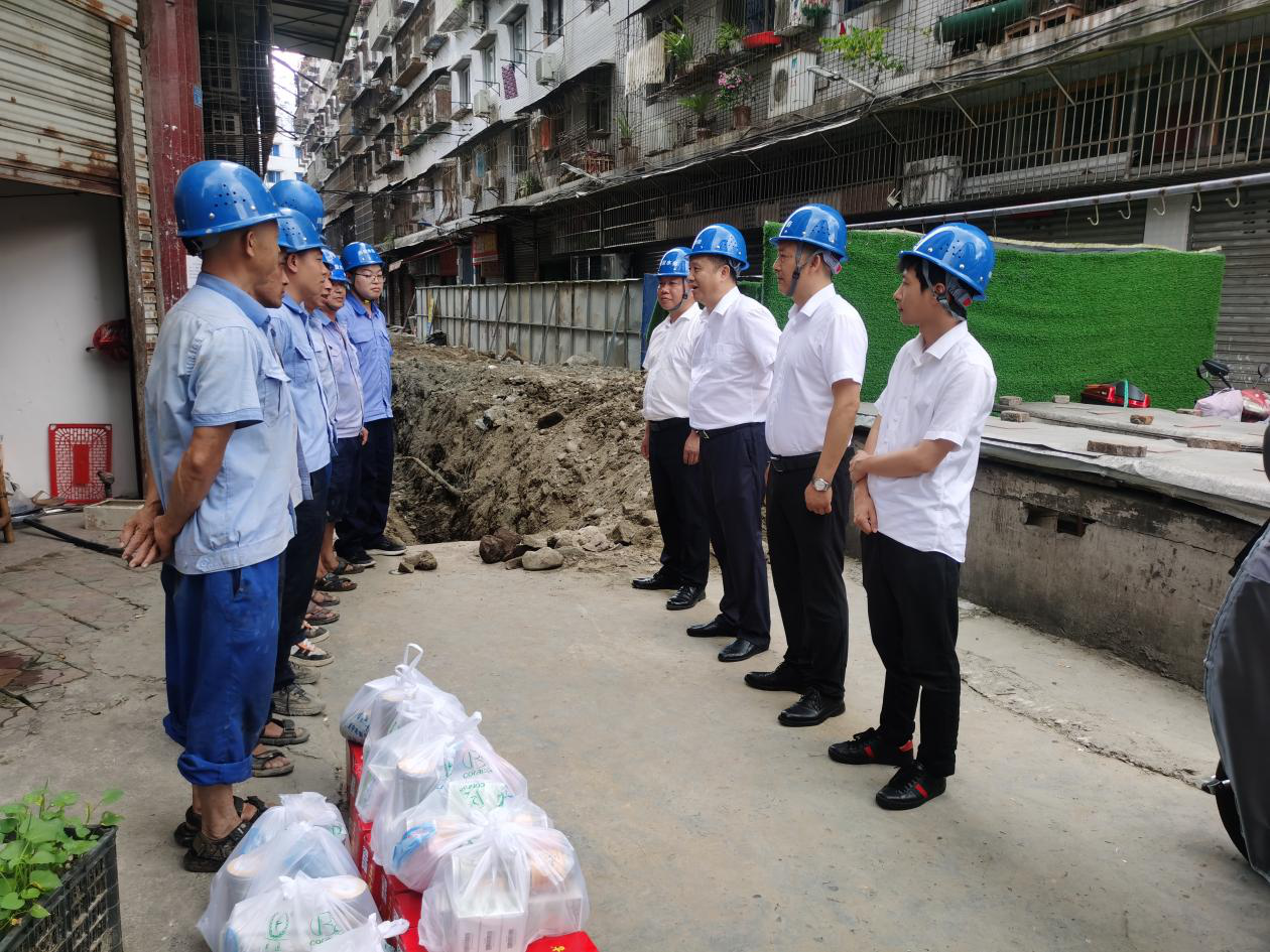 今年入夏以來,射洪市氣溫居高不下,一線工作者備受“烤”驗。為了保障員工身體健康,確保安全生產(chǎn),8月14日下午,川投水務(wù)集團(tuán)公司黨委委員、副總經(jīng)理劉松果率隊前往射洪水司紅星路管網(wǎng)改造施工現(xiàn)場對作業(yè)員工進(jìn)行夏日防暑降溫送清涼慰問。