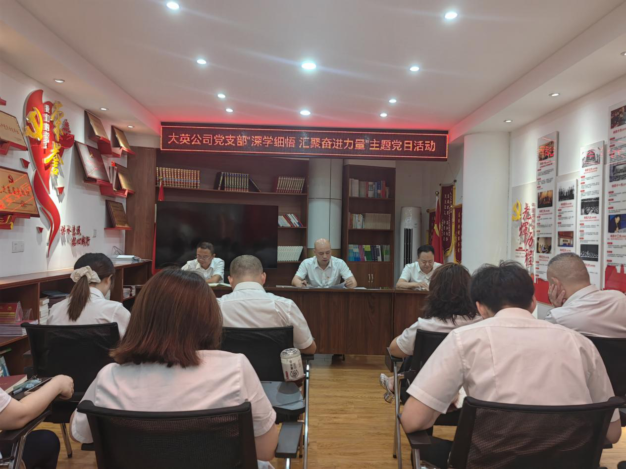 為深入貫徹習(xí)近平新時代中國特色社會主義思想和黨的二十大精神,進(jìn)一步強(qiáng)化黨員干部的理論武裝,凝聚干事創(chuàng)業(yè)的強(qiáng)大合力,大英公司黨支部于8月28日在公司5樓黨員活動室組織開展了“深學(xué)細(xì)悟 匯聚奮進(jìn)力量”主題黨日活動。全體黨員及入黨積極分子參加了此次活動,活動由黨支部書記王文川主持。
