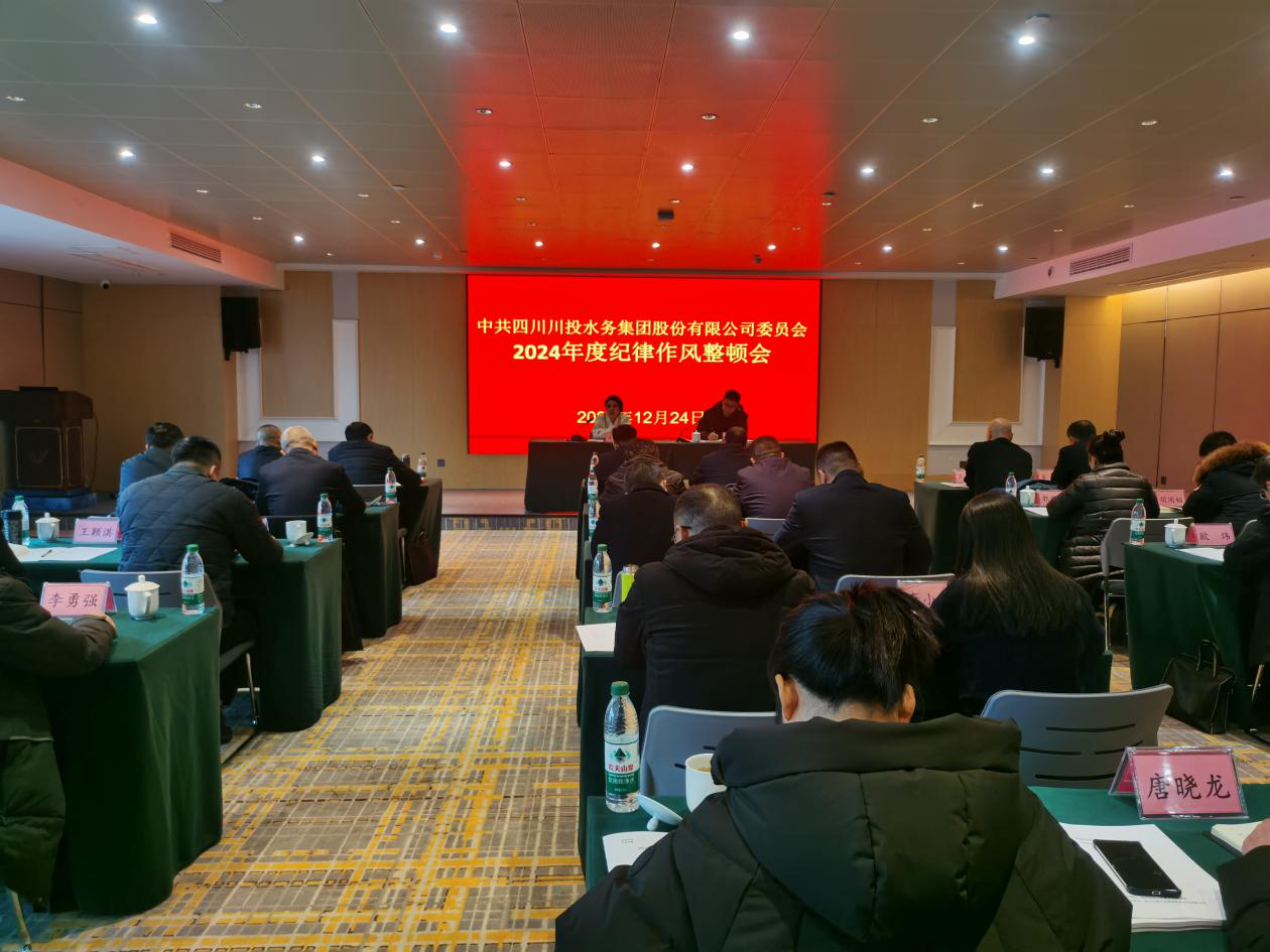 為推動全面從嚴(yán)治黨向縱深發(fā)展,提升紀(jì)檢干部履職盡責(zé)能力,2024年12月24日,川投水務(wù)集團黨委召開2024年度紀(jì)律作風(fēng)整頓會,川投水務(wù)集團黨委書記、執(zhí)行董事、總經(jīng)理王小元,川投水務(wù)集團黨委委員、副總經(jīng)理嚴(yán)斯亮、唐韜,本部中層副職以上人員,各所屬公司黨組織負(fù)責(zé)人、領(lǐng)導(dǎo)班子成員和相關(guān)黨建、紀(jì)檢人員共計40余人參加了會議。
