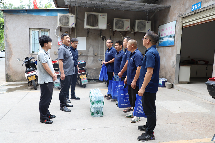 支部書記、執行董事龔慶一行深入公司廠區、安裝維修隊及客戶服務中心,為一線職工送去了藿香正氣液、板藍根、風油精、葡萄糖口服液、礦泉水等防暑降溫物資,與職工們親切交談,詳細詢問他們的工作和生活情況。同時囑咐大家要注意勞逸結合,合理安排工作時間,做好防暑降溫措施,并強調當前正值汛期,生產廠區要做好防汛措施,加強雷電天氣設施設備安全檢查,確保正常運行。