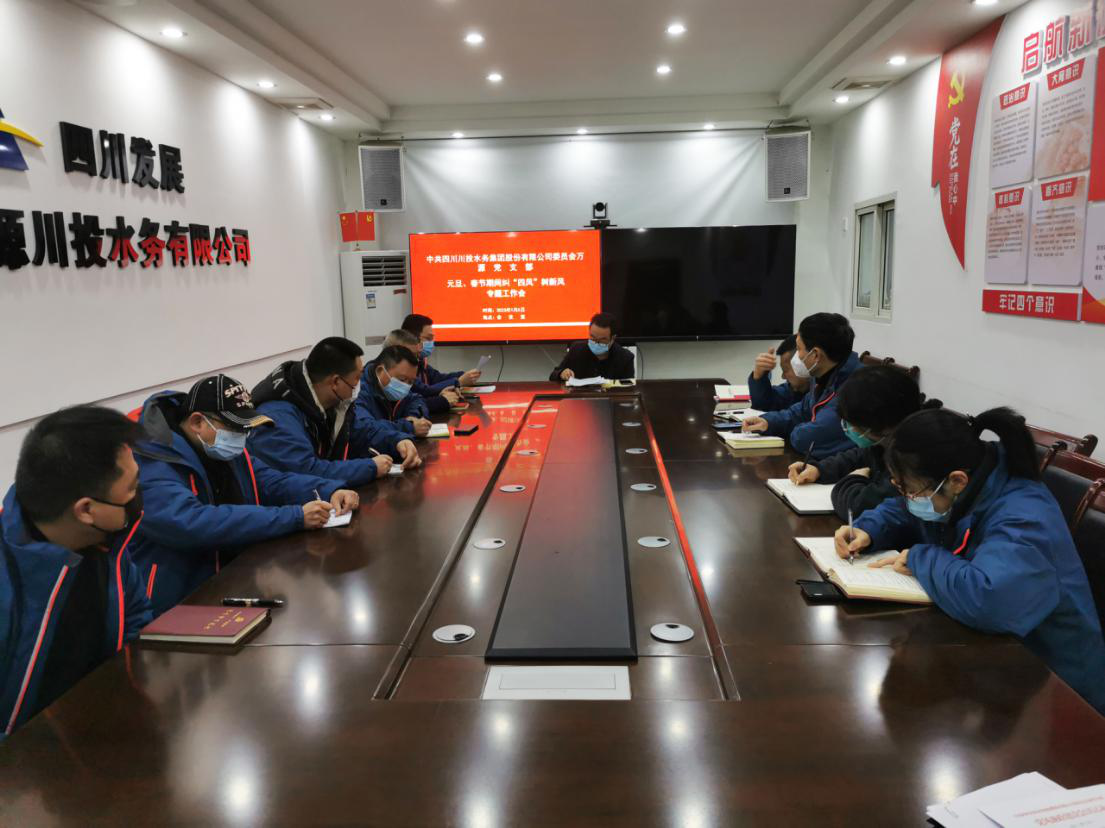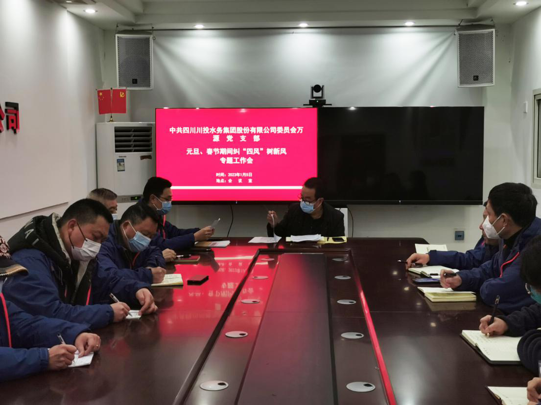 2023年春節將至,為馳而不息的做好防治節日“四風”問題,營造“風清氣正”的節日氛圍,按照川投水務集團黨委、紀委的工作要求,萬源公司黨支部于1月5日上午組織召開了元旦、春節期間糾“四風”樹新風專題工作會。公司領導班子成員、部門副職及以上管理人員參加會議。