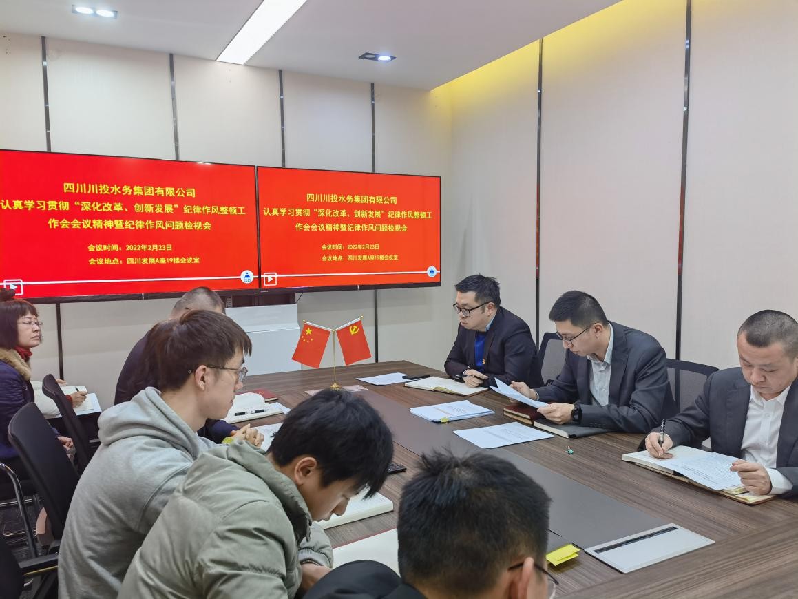 2022年2月23日,為全面貫徹落實四川發展黨委《關于開展“深化改革、創新發展”紀律作風整頓工作的通知》文件精神,進一步增強隊伍凝聚力和戰斗力,優化發展環境,切實助推企業實現高質量發展,川投水務集團認真組織召開“深化改革、創新發展”紀律作風整頓工作會暨本部紀律作風問題檢視會,會議由川投水務集團黨委委員、副總經理嚴斯亮主持。