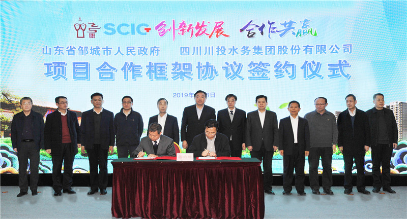 2019年1月8日,川投水務集團與山東鄒城市政府在鄒城市舉行項目合作框架協議簽約儀式。四川省國資委黨委書記、主任徐進,川投集團黨委副書記、副董事長、總經理劉體斌,董事、副總經理李洪,川投水務集團黨委書記、董事長梁有國,山東省管企業監事會主席楊少軍,濟寧市委常委、鄒城市委書記張百順,濟寧市國資委副書記、副主任岳修廣等領導出席簽約儀式。鄒城市委副書記、市長杜慶節主持簽約儀式。