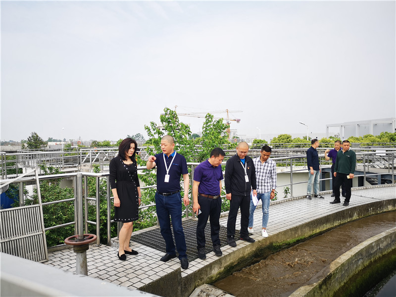 考察組一行深入杰陽排水公司綿遠河污水處理廠,實地參觀了解污水處理廠建設及工藝運行情況。
