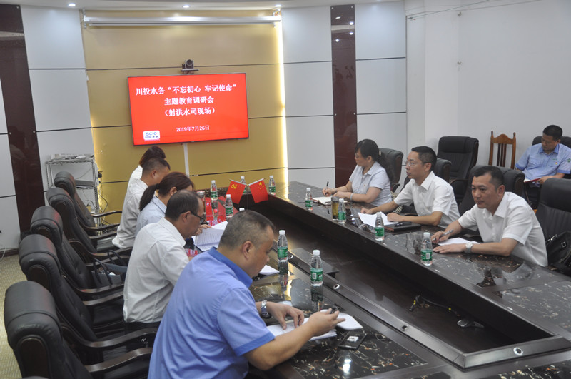 7月26日下午,水務集團黨委副書記、總經理鄧銳帶領水務集團安全環保部經理馬玉彬、生產技術部經理王鎮到射洪水司開展“不忘初心、牢記使命”主題調研,與射洪水司領導班子及各部門負責人進行交流座談。