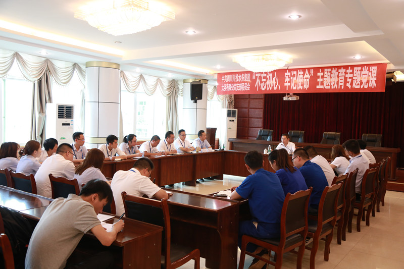 8月9日,川投水務集團黨委副書記、總經理鄧銳在大英水司以“不忘初心,履職盡責勇擔當;牢記使命,助力發展敢作為”為題講主題教育黨課。川投水務大英水司全體黨員干部參加了黨課學習。