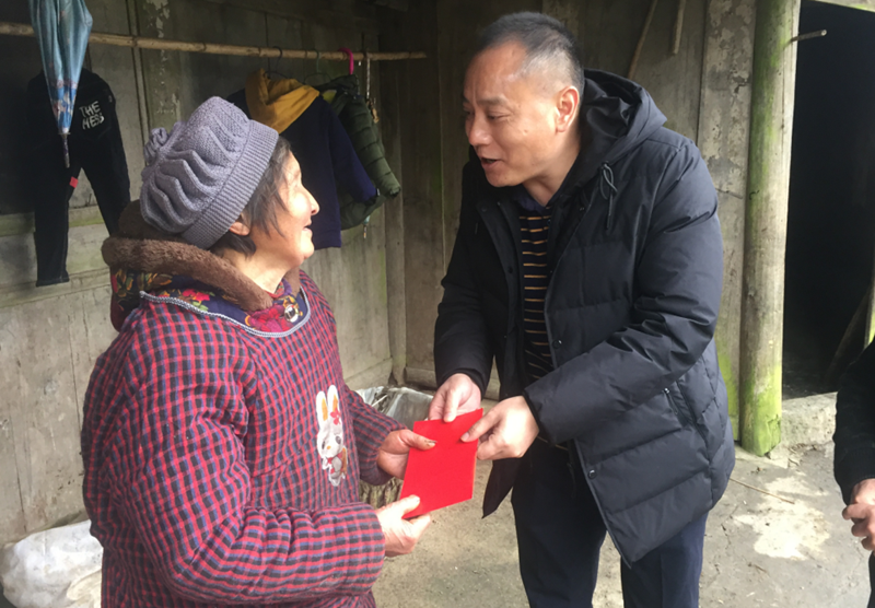 為將黨的十九屆四中全會脫貧攻堅新精神落到實處,2019年12月30日,受川投水務黨委書記、董事長梁有國委托,川投水務黨委委員、紀委書記但必良一行前往金口河區永勝鄉和平村,走訪慰問對口幫扶的貧困群眾,開展節前“送溫暖”活動。