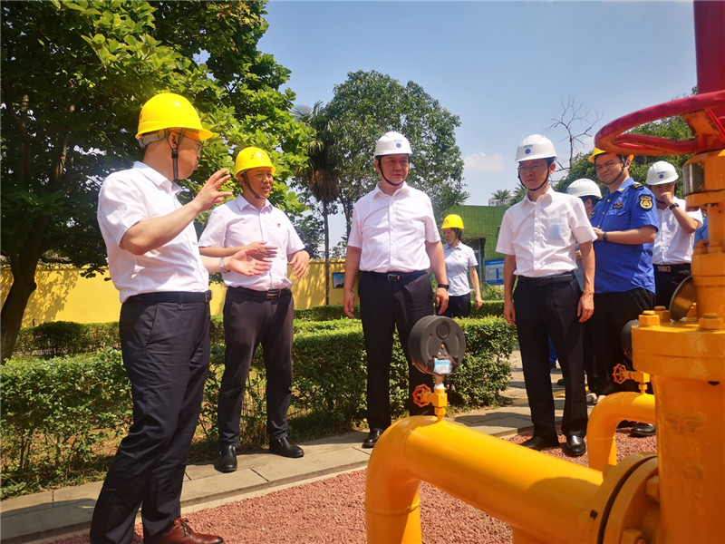 中午1時(shí)許,黃董事長(zhǎng)一行不顧室外超過(guò)34度的高溫,頂著炎炎烈日先后前往宏源公司氣井、儲(chǔ)配站、CNG加油加氣站、液化氣充裝站等地視察調(diào)研、檢查安全工作,并前往客戶服務(wù)中心了解了宏源公司打造一站式服務(wù)、信息化建設(shè)等情況。在井場(chǎng)和儲(chǔ)配站,黃董事長(zhǎng)一行了解了場(chǎng)站設(shè)備設(shè)施、工藝流程和安全運(yùn)行等基本情況,并重點(diǎn)察看了安全生產(chǎn)清單制資料臺(tái)賬和燃?xì)釹CADA系統(tǒng);在CNG加油加氣站和液化氣充裝站,黃董事長(zhǎng)一行察看了加油加氣流程、儲(chǔ)氣罐、壓縮機(jī)房和液化氣儲(chǔ)罐區(qū)安全運(yùn)行情況,了解當(dāng)前成品油和壓縮氣的價(jià)格、行情、油和氣各自優(yōu)勢(shì)等經(jīng)營(yíng)細(xì)節(jié)。黃董事長(zhǎng)對(duì)宏源氣司“安全專家會(huì)診”等措施給予了充分認(rèn)可,要求宏源公司繼續(xù)把安全供氣放在首位,以優(yōu)質(zhì)高效服務(wù)做好民生保障,針對(duì)當(dāng)前夏季高溫暴雨天氣,要認(rèn)真吸取溫嶺槽罐車爆炸事故教訓(xùn),加強(qiáng)重要區(qū)域、關(guān)鍵環(huán)節(jié)的安全管理,加強(qiáng)隱患排查治理,要堅(jiān)持“以人為本,安全第一”的原則,提前做好搶險(xiǎn)撤避應(yīng)急預(yù)案,提高應(yīng)急處置能力,持續(xù)保持安全平穩(wěn)發(fā)展態(tài)勢(shì)。
