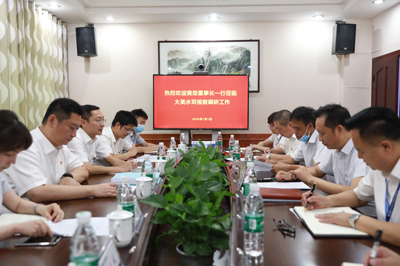 實地調研結束后,黃董事長一行在大英水司四樓會議室召開了座談會。會上,大英水司黨支部書記、總經理劉松果從公司概況、內部管理、存在問題及下步工作打算等方面進行了詳細的工作匯報。聽取匯報后,黃董事長在肯定大英水司經營管理及取得成績的同時,對大英水司下階段工作提出五點要求:一是狠抓黨建工作,全力以赴保落實,要把黨建工作融入到生產經營管理,突出特色、亮點,推動供水服務和經濟效益不斷得到提升;二是狠抓經營工作,全力以赴保發展,要做好目標任務分解,全力以赴打贏發展保衛戰,實現持續高質量發展;三是狠抓疫情防控,全力以赴保穩定,要繃緊防疫之弦,做好職工教育引導,堅持屬地管理原則,堅持報告制度,保持信息通暢,確保平穩發展大局;四是狠抓安全生產,全力以赴保平安,要加強安全生產責任制和清單制管理,做好防汛各項工作,做到萬無一失;五是狠抓廉政建設,全力以赴保和諧,要不斷增強廉潔意識,時刻把紀律和規矩挺在前面,堅決杜絕一切違紀違法行為,構建聚精會神搞建設、一心一意謀發展的和諧氛圍。