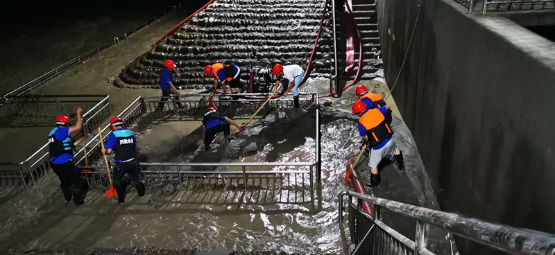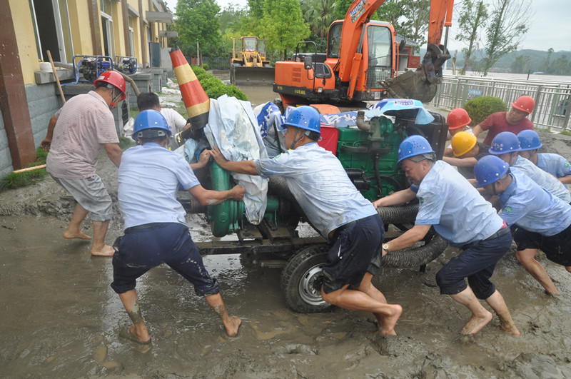 會上,黃董事長通報了所屬中江水司、射洪水司及榮縣氣司等公司受災情況及抗洪搶險工作組織開展情況,著重對受災較為嚴重的射洪水司龍灘村取水口搶險工作進行了通報。受“8.16”百年一遇的涪江洪峰過境影響(此次洪峰流量最高達22600立方米/秒,比2018年“7.11”洪災時最高流量高出1200立方米/秒),射洪水司龍灘村取水口廠區被過境洪峰及其攜帶的大量泥沙所淹沒,被迫停止取水。為盡快恢復正常供水,川投水務黨委書記、董事長黃勁,黨委副書記、總經理鄧銳駐守射洪水司現場指揮,帶領由射洪水司精干力量組成的應急搶險隊伍歷經22小時連續不間斷奮戰,成功恢復供水,取得抗洪搶險的階段性勝利。