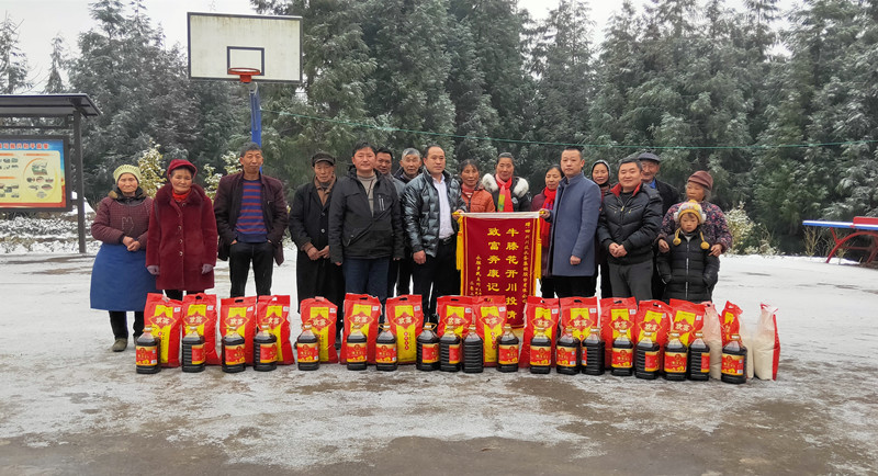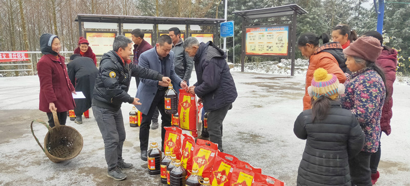 12月30日上午9點,李至彬副部長來到海拔1500多米的和平村村委會,冒雪向十多名困難群眾送上米、油和慰問金。李副部長向鄉親們表示,今天自己受川投水務黨委之托來看望大家,希望大家能夠在黨和國家的精準扶貧政策下,努力發展生產,早日致富奔康,并祝愿鄉親們在新的一年里,身體健康,日子越過越紅火。困難群眾劉燦珍由于腿腳殘疾,行走不便,李副部長踏著雪上門慰問,詳細詢問了家庭生活情況,并送上了米、油及慰問金。