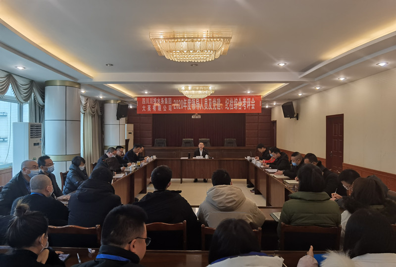 2021年1月29日,川投水務集團黨委副書記、總經理鄧銳、人力資源部部長候獻國、安全環保部部長馬玉斌、黨群工作部劉言一行對大英水司2020年生產經營、團隊建設、企業黨建、廉潔建設及安全環保等工作開展情況進行綜合考評。大英公司班子成員、中層管理人員、員工代表參加考評。