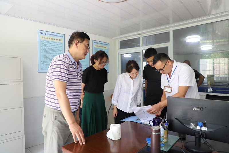 祝瑗一行首先深入生產廠區對鹽酸的儲存情況、鹽酸儲存間應急物資、危險化學品管理情況進行了檢查,并著重檢查了鹽酸的操作程序和化驗室藥品試劑的使用記錄臺賬、廢液回收管理情況,隨后在會議室對照川投水務集團生態環境保護專項檢查記錄表的內容對公司安全環保相關資料進行了仔細查看。