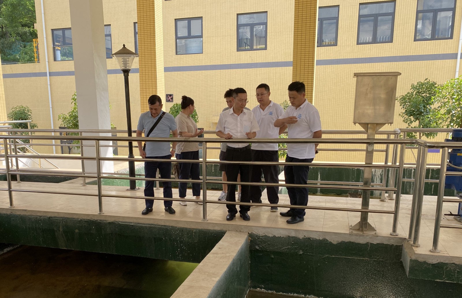 2021年7月14日下午,川投水務集團黨委副書記、總經理鄧銳率經營管理部部長王鎮、安全環保部部長馬玉斌到川投船重一枝山污水處理廠督導生態環境保護工作。川投船重董事長劉祝,建設安全部經理李軍,綜合管理部經理張梅等相關人員陪同督導。