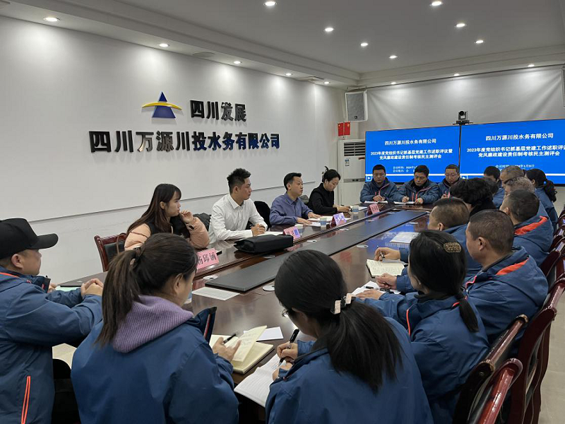 1月9日,川投水務集團副總經理譚衛鵬率考評工作組一行赴萬源水司開展2023年度黨組織書記抓基層黨建工作述職評議暨黨風廉政建設責任制考核民主測評工作。萬源水司黨支部書記、執行董事、總經理李至彬及領導班子、中層管理干部、職工代表參加會議。