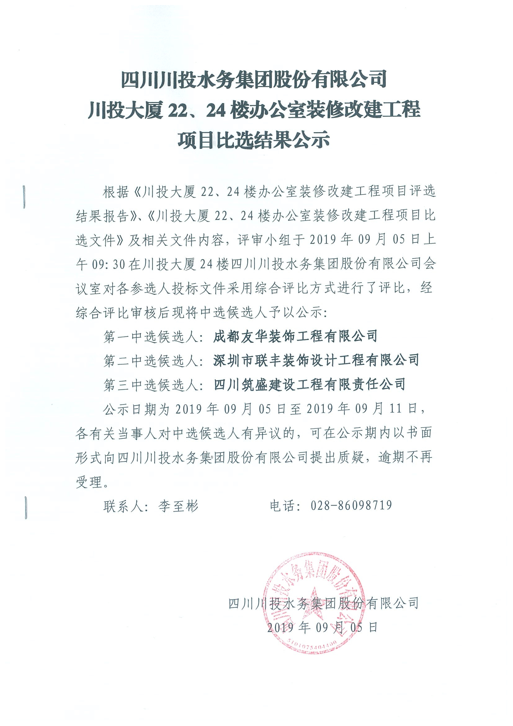 上一條:四川川投水務集團股份有限公司川投大廈22、24樓辦公室弱電改建工程 項目競爭性談判公告