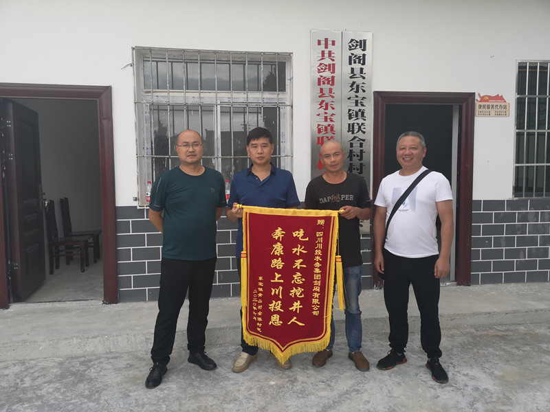 最后,何總在村委會(huì)聽(tīng)取了駐村第一書記及村支兩委幫扶工作開(kāi)展情況的匯報(bào),與村支兩委交換了脫貧工作相關(guān)意見(jiàn),青山村聯(lián)合村委會(huì)代表全體村民向劍閣水司送上了“吃水不忘挖井人、奔康路上川投恩”的錦旗!