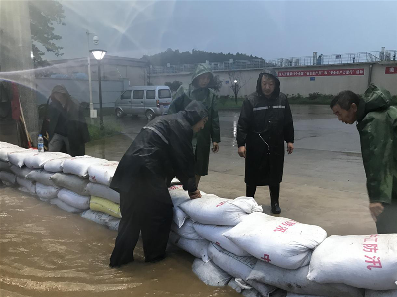 面對險情,副總經理黃貞明冒大雨將柴油送到興隆污水處理廠,指導應急發電,確保污水處理廠正常生產、達標排放。總經理朱禹,副總經理秦榮、莫國兵帶隊駐守生產一線,確保安全供水,水質安全保障組加大水樣檢測化驗頻率,后勤、宣傳報道組、物資保障組辦公室安排抗洪搶險信息宣傳報送、后勤物資保障工作,全體干部職工堅守崗位、各司其職、行動迅速。