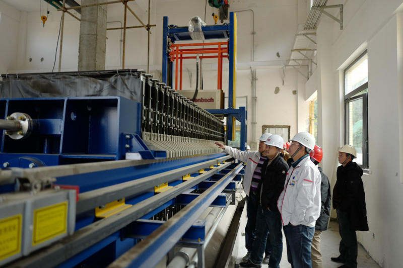 在項目現場,劉祝一行在川投船重副總經理馬銘偉、現場負責人李軍的陪同下對壓濾間、高效沉淀池、鼓風機房、排污口等進行調研,并與現場EPC施工總包、項管、監理等單位進行簡短會議。劉祝指出,要在保障安全的前提下,巧排工期,力爭年前完成項目進入試運行,并勉勵全體員工繼續努力,早日建成項目,完成政府和股東交予的任務。