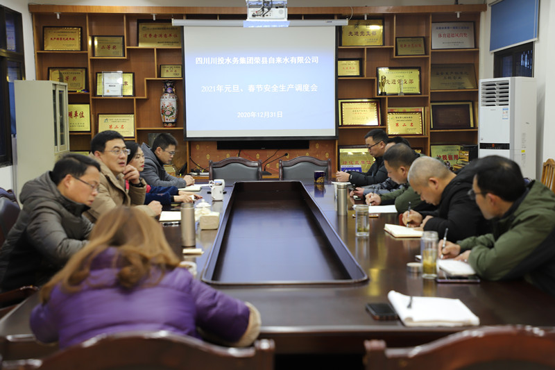 元旦將近,為有效防范和遏制安全生產事故發生,確保縣城區的安全穩定供水,12月31日上午,川投水務榮縣水司在會議室召開2021年元旦、春節安全生產調度會。經營班子成員,生產、工程及綜合后勤等部門管理人員共計11人參會,會議由執行董事、總經理龔慶主持。