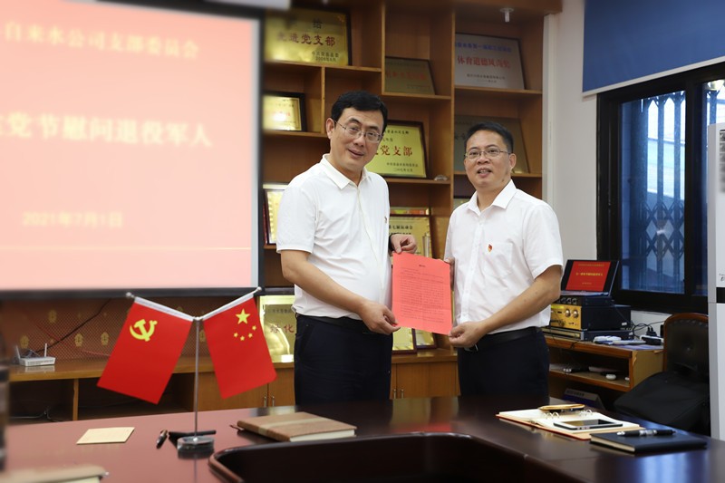 隨后,公司組織開展了黨支部書記講黨課活動,由榮縣水司支部書記、執(zhí)行董事、總經(jīng)理龔慶主持親自授課,黨課的主題為“感黨恩 聽黨話 跟黨走”及“辦實事 開新局”。龔慶對習總書記在慶祝大會上的講話進行了再次傳達學習,并肯定了全體黨員及退役軍人整體形象好、講政治、有覺悟,在各自的崗位起到了先鋒模范作用,不負黨員和退役軍人的光榮稱號,對公司發(fā)展做出了積極貢獻。龔慶同時提出三點要求:一是黨員和退役軍人要居安思危,增強憂患意識,常懷憂黨之心,恪盡興黨之責,以忠誠于黨和人民的事業(yè)為天職,自覺地擔當起實現(xiàn)國家富強和人民幸福的歷史使命。二是要提高政治站位、堅定理想信念,做到旗幟鮮明講政治,堅持學習、追求進步,用黨的科學理論武裝頭腦,時刻保持干事創(chuàng)業(yè)的強大動力。三是要堅持中國共產(chǎn)黨為人民服務(wù)的宗旨,供水關(guān)乎民生,連接千家萬戶,作為黨員和退役軍人,要恪盡職守、沖鋒在前,不斷提升服務(wù)質(zhì)量,做好安全穩(wěn)定供水工作。