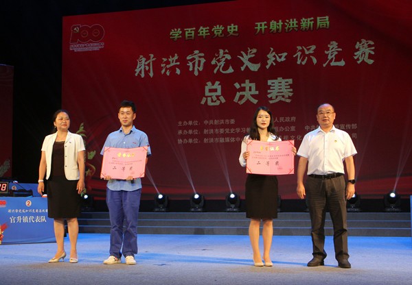 2021年7月16日下午2:30分,由中共射洪市委、射洪市人民政府主辦,市委黨史學(xué)習(xí)教育領(lǐng)導(dǎo)小組辦公室、中共射洪市委宣傳部承辦的射洪市“學(xué)黨史·跟黨走”黨史知識(shí)競(jìng)賽總決賽在市文化藝術(shù)中心舉行,射洪市各鎮(zhèn)、街道、市直各部門代表參加并觀看了比賽。