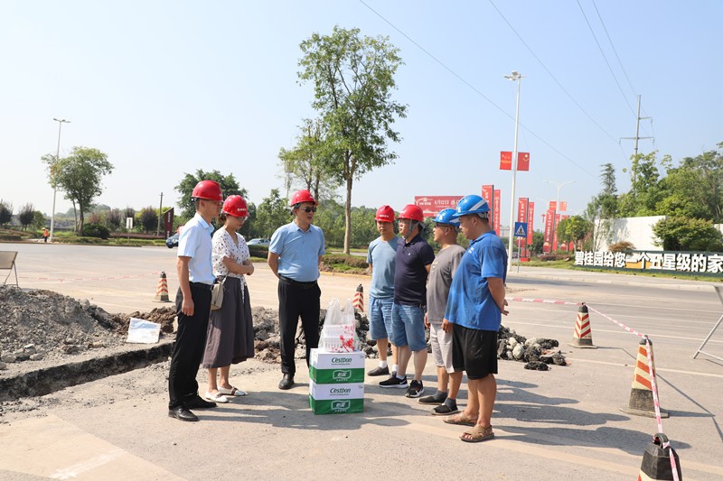 炎炎夏日,酷暑難耐。近段時間,自貢市連續(xù)發(fā)布紅色高溫預警,榮縣城區(qū)室外最高氣溫已高達40℃以上。榮縣水司黨支部書記、執(zhí)行董事、總經(jīng)理龔慶率經(jīng)營班子成員頂著烈日深入維修搶險和安裝工程施工現(xiàn)場,為奮戰(zhàn)在一線的職工送去了藿香正氣液、礦泉水、清熱解毒口服液等防暑降溫物品。