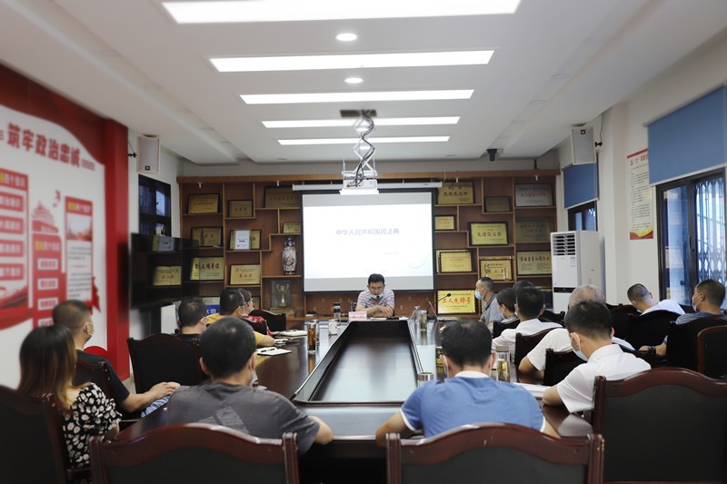 為深入宣傳學習習近平法治思想,貫徹落實川投水務集團“送法進企業”的工作要求,進一步升干部職工法律素養,8月16日下午,榮縣水司邀請法律顧問邱博能律師對《民法典》進行專題宣講,會議由黨支部書記、執行董事、總經理龔慶主持,公司重要崗位干部職工共20余人在會議室參加了宣講會。