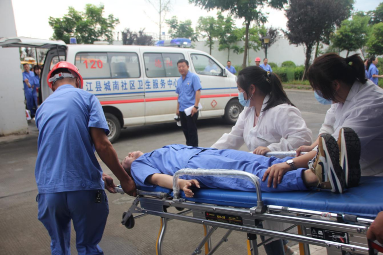 上午8:40,隨著演練總指揮朱禹一聲令下,演練正式開(kāi)始。參演隊(duì)伍迅速集結(jié),到達(dá)演練地點(diǎn)按照預(yù)先設(shè)置的演練科目及流程開(kāi)展演練。整個(gè)演練過(guò)程緊張有序,演練環(huán)節(jié)銜接緊密,參演人員分工明確,任務(wù)清晰,行動(dòng)迅速,并在中江縣城南衛(wèi)生服務(wù)中心的大力支持下,圓滿完成了設(shè)置的三場(chǎng)模擬事故演練任務(wù)。通過(guò)本次演練,檢驗(yàn)了應(yīng)急預(yù)案的科學(xué)性和實(shí)用性,鍛煉了隊(duì)伍,積累了實(shí)戰(zhàn)經(jīng)驗(yàn),有效提高了應(yīng)對(duì)突發(fā)事件的反應(yīng)及處置能力。