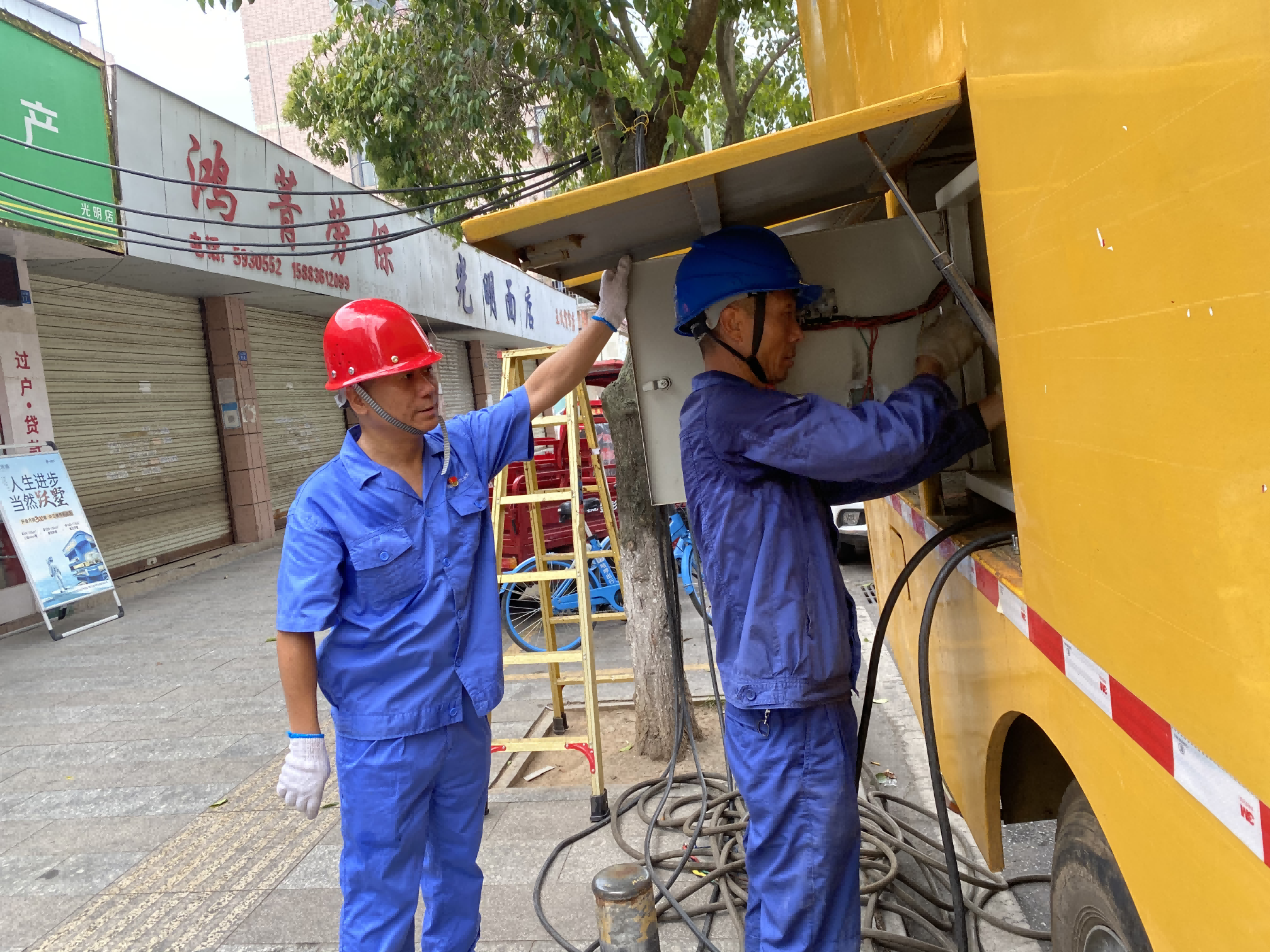 8月23日、24日,中江水司城區供水泵房再度停電,發電機也因連續高溫運轉故障,為確保用戶高溫天氣下生活用水需求,公司迅速啟動應急預案,黨支部書記、董事長、總經理朱禹立即與國網四川省電力公司中江縣供電分公司溝通協調,請求調配應急發電車給予電力支援。對接聯系后,中江供電分公司迅速組織精干力量,電力技術人員與公司供水部職工頂著烈日,冒著酷暑,身上的衣服已經濕透,仍以最快的速度啟動發電車,恢復供水泵房正常生產,居民用水得以保障。