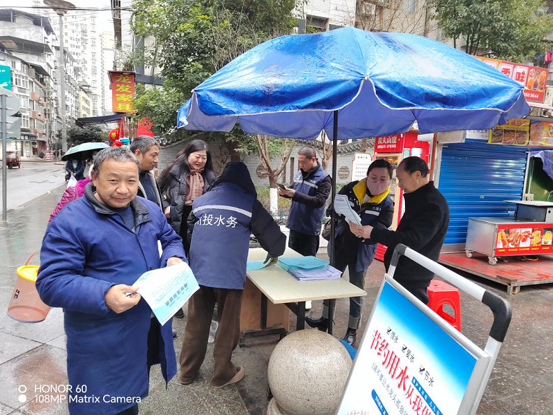 1月18日,為持續做好冬季用水、安全用水宣傳工作,萬源水司組織相關工作人員前往城區人流量較大的休閑廣場開展用水宣傳,主要就冬季安全用水以及用水設施的防凍保護進行了現場宣傳。