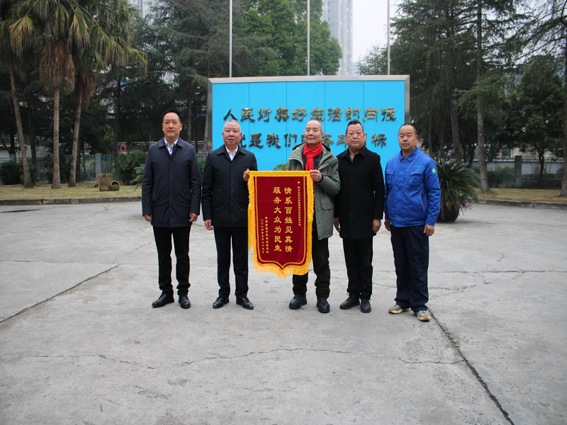 2024年1月29日,錦湖商廈業主委員會送來的“情系百姓見真情,服務大眾為民生”錦旗,對射洪水司為民辦實事、解民憂表達感激之情。