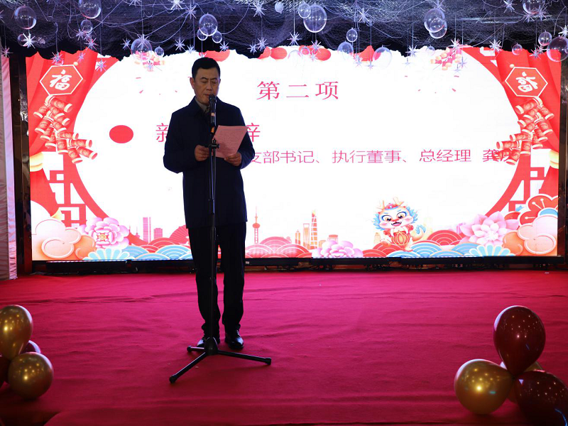 隨后,公司黨支部書記、執行董事、總經理龔慶進行了2024年迎春聯歡會的新春致辭。他指出,2023年公司努力克服水資源緊缺和房地產持續低迷的不利情況,統籌抓好了黨建紀檢、安全環保及精細化管理等工作,圓滿完成了2023年各項生產經營指標任務。