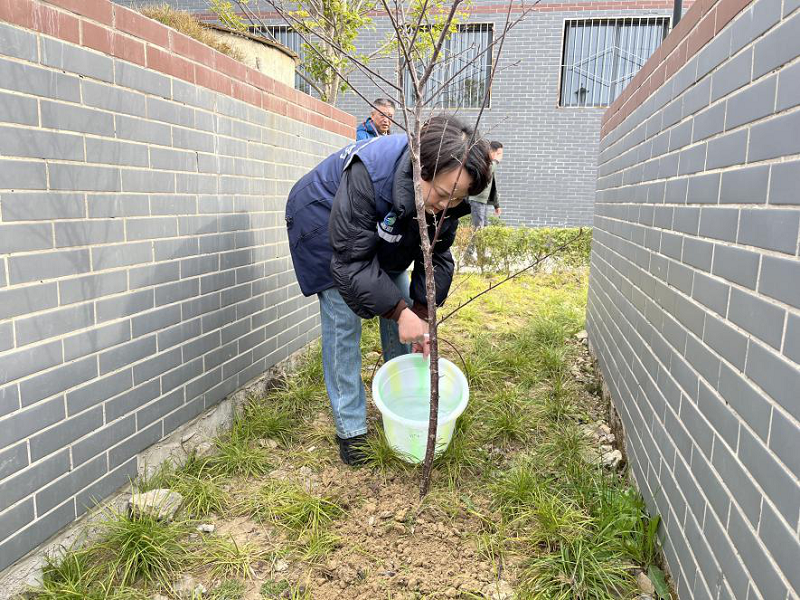 活動當天,陽光明媚、春風拂面,參加活動人員熱情高漲,干勁十足,大家密切配合,挖坑、鏟土、扶苗、培土、澆水,齊心協力讓一棵棵新栽種的樹苗在和煦的春風中煥發出勃勃生機,為馱山水廠增添了一抹新綠。