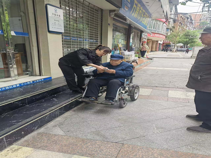 2024年4月22日上午,萬源水司的收費大廳迎來了一位特殊的客戶。這位市民因身體原因行動不便,卻依然堅持親自前來辦理繳費業務。面對這位特殊的客戶,收費大廳的工作人員沒有猶豫,立即伸出了援手,主動為這位市民提供了全程陪伴的貼心服務。