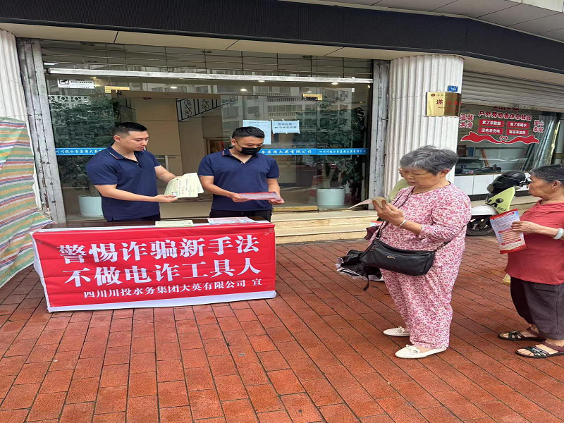 為積極配合打擊治理電信網絡詐騙工作,全力貫徹落實四川發展集團、四川省生態環保集團和川投水務集團下發的《關于組織開展“全民反詐在行動”集中宣傳月的通知》文件精神,進一步增強全民反詐意識,結合公司實際開展了以“警惕詐騙新手法,不做電詐工具人”為主題的反詐宣傳活動。