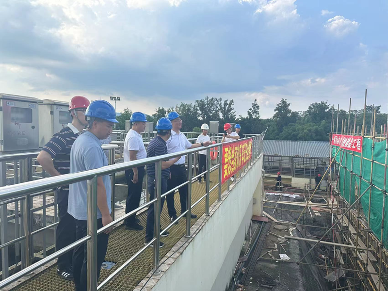 中江生態環境局局長江瀾、副局長林振華,中江公司黨支部書記、董事長、總經理朱禹,副總經理曾曦,污水部經理盧松陪同檢查。