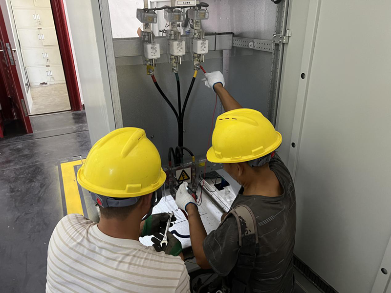 為全力應對高溫“烤”驗,切實保障高溫環境下電氣設施設備的安全使用,有效確保安全平穩供水。8月27日,川投水務射洪公司副總經理杜剛帶隊,會同安全監察部、生產部,組織維保單位四川麒能電力工程有限公司對公司廠區、取水口、西片區泵站等區域的用電設施設備和線路進行了專項檢查。檢查人員手持紅外線測溫儀,認真排查配電室內配電柜及重點線路的發熱情況,對接線連接點進行細致檢測并緊固處理,檢查了絕緣手套等安全工器具的定期檢測情況。
